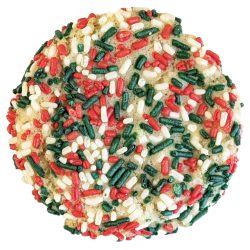 INGREDIENTS: Unbleached, Unbromated Wheat Flour (Wheat Flour, Niacin, Iron, Thiamin Mononitrate, Riboflavin, Folic Acid, Malted Barley Flour), Sugar, Butter (Cream, Salt), Hershey’s White Premium Chips (Sugar, Skim Milk, Hydrogenated Vegetable Oil [Palm Kernel Oil, Soybean Oil, Palm Oil], Palm Kernel Oil, Contains 2% Or Less Of: Artificial Flavor, Lecithin (Soy), Salt ), Rainbow Sprinkles (Sugar, Hydrogenated Palm Kernel Oil, Corn Starch, Sunflower Lecithin, FD&C Colors (Yellow #6 Lake, Yellow #5 Lake, Blue #1 Lake, Red #40 Lake, Red #3 Dye), Maltodextrin, Carnauba Wax, Vanillin, Cellulose Gum), Eggs, Cornstarch, Baking Soda, Salt, Vanilla Extract.