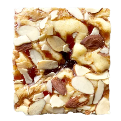 INGREDIENTS: Sugar, Unbleached, Unbromated Wheat Flour (Wheat Flour, Niacin, Iron, Thiamin Mononitrate, Riboflavin, Folic Acid, Malted Barley Flour), Butter (Cream, Salt), Eggs, Raspberry Jam (Sugar, Seedless Red Raspberries, Water, Pectin, Citric Acid), Almonds, Salt, Baking Powder, Almond Oil (Canola Oil, Natural Flavors, Vitamin E), Canola Oil Spray (Canola Oil, Soy Lecithin, Dimethyl Silicone).